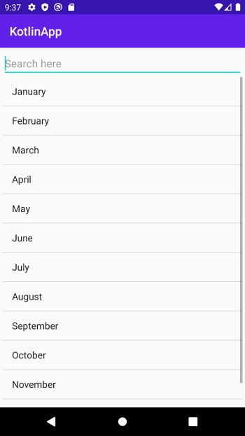 此示例演示如何在 Android 中使用 Kotlin 在自定義 ListView 中實現搜尋功能。