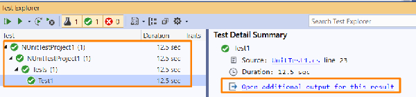 轉到**測試->測試資源管理器**。然後執行測試。測試資源管理器中的輸出為: