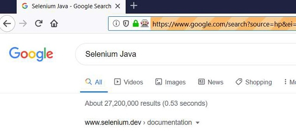 import org.openqa.selenium.By; import org.openqa.selenium.WebDriver; import org.openqa.selenium.WebElement; import org.openqa.selenium.chrome.ChromeDriver; import java.util.concurrent.TimeUnit; import org.openqa.selenium.support.ui.WebDriverWait; import org.openqa.selenium.support.ui.ExpectedConditions; public class SearchAction{ public static void main(String[] args) { System.setProperty("webdriver.chrome.driver","C:\Users\ghs6kor\Desktop\Java\chromedriver.exe"); WebDriver driver = new ChromeDriver(); driver.manage().timeouts().implicitlyWait(5, TimeUnit.SECONDS); driver.get("https://www.google.com/"); // identify element WebElement p=driver.findElement(By.name("q")); //enter text with sendKeys() then apply submit() p.sendKeys("Selenium Java"); // Explicit wait condition for search results WebDriverWait w = new WebDriverWait(driver, 5); w.until(ExpectedConditions.presenceOfElementLocated(By.xpath("//ul"))); p.submit(); driver.close(); } }