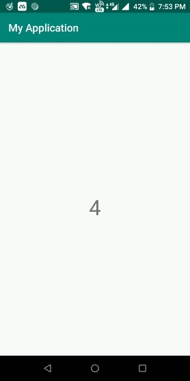 <?xml version = "1.0" encoding = "utf-8"?> <LinearLayout xmlns:android = "http://schemas.android.com/apk/res/android" xmlns:app = "http://schemas.android.com/apk/res-auto" xmlns:tools = "http://schemas.android.com/tools" android:layout_width = "match_parent" android:gravity = "center" android:layout_height = "match_parent" tools:context = ".MainActivity" android:orientation = "vertical"> <TextView android:id = "@+id/actionEvent" android:textSize = "40sp" android:layout_marginTop = "30dp" android:layout_width = "wrap_content" android:layout_height = "match_parent" /> </LinearLayout>