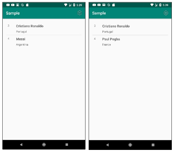 }步驟6 - 建立兩個活動(AddPlayerActivity & ModifyPlayerActivity)並新增以下程式碼 -