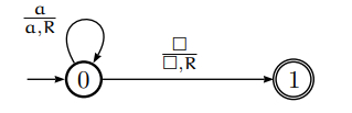為了跟蹤計算,兩個狀態 0(初始)和 1(最終)就足夠了。作為轉移函式,我們可以使用: