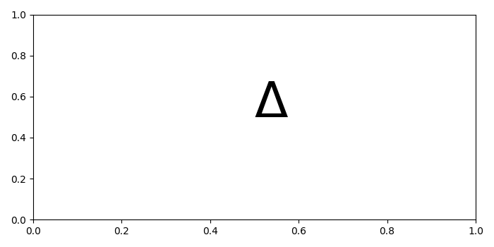 import matplotlib.pyplot as plt # Set the figure size plt.rcParams["figure.figsize"] = [7.00, 3.50] plt.rcParams["figure.autolayout"] = True # Unicode symbol plt.text(0.5, 0.5, s=u"\u0394", fontsize=50) # Display the plot plt.show()