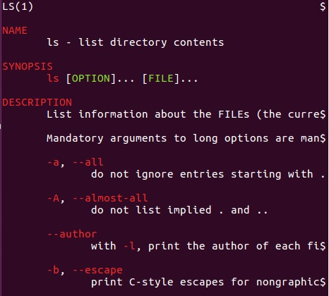接下來,我們執行以下命令以檢視當我們使用某些命令查詢 man 手冊頁時彩色 man 手冊頁的外觀。