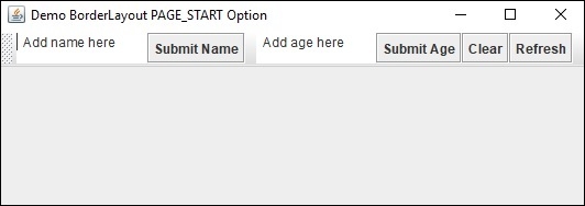 以下是 BorderLayout.PAGE_START 選項 的示例 -