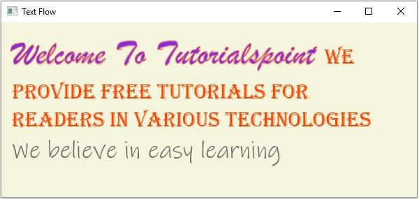 Text text2 = new Text(" We provide free tutorials for readers in various technologies ");