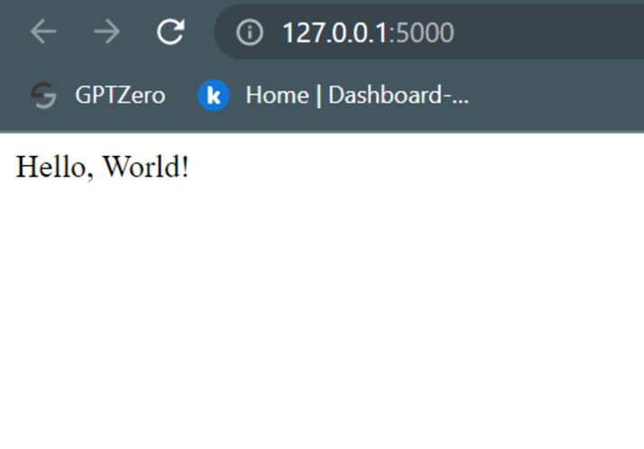 訪問 `http://127.0.0.1:5000/` 以檢視“Hello, World!”訊息。