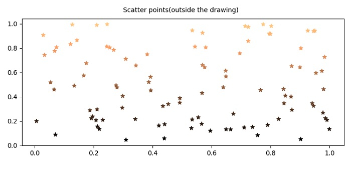 ax.annotate('Scatter points(outside the drawing)', xy=(0.30, 1.05), xycoords=ax.get_xaxis_transform())