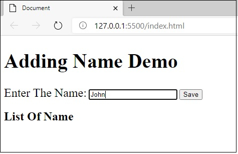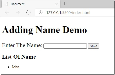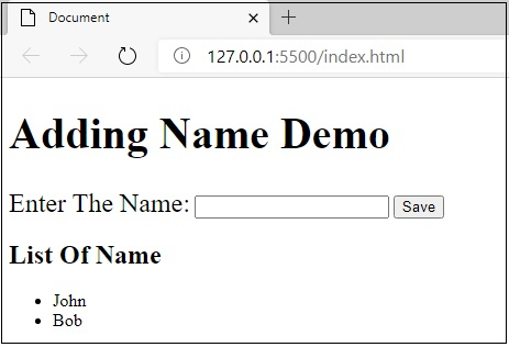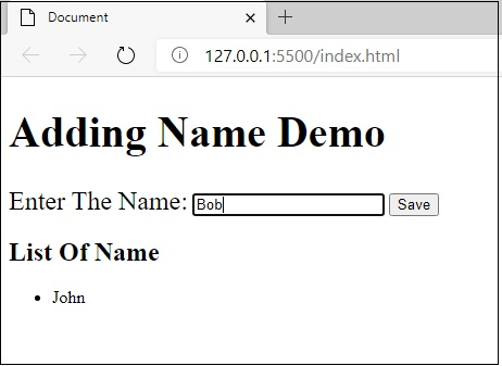 再次,我輸入了名稱“Bob”。現在,更新後的輸出如下 −
