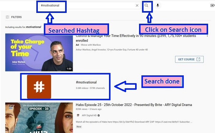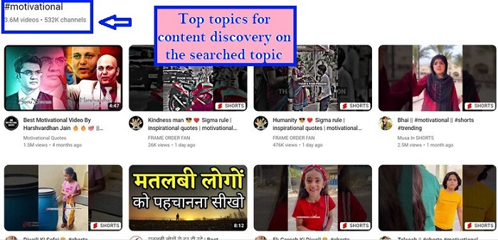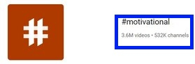 例如,#motivational 用於 360 萬個影片和 53.2 萬個頻道。針對您的新內容發現進行研究。點選視窗上的此圖示。