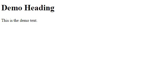 <!DOCTYPE html> <html> <head> <title>Document Title comes here</title> </head> <body> <h1> Demo Heading </h1> This is the demo text. </body> </html>