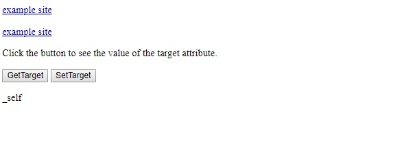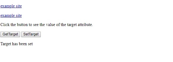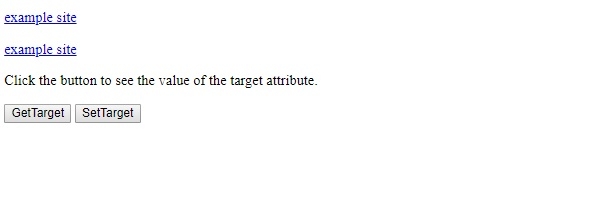 getTarget1() 將從第一個連結獲取 target 值並在 id 為“Target1”的段落標籤中顯示。setTarget2() 將 link2 的 target 值從預設的 _blank 更改為自定義框架“newframe”。