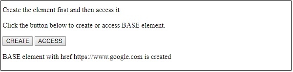 document.getElementById("SAMPLE").innerHTML = "BASE element with href https://www.google.com is created";