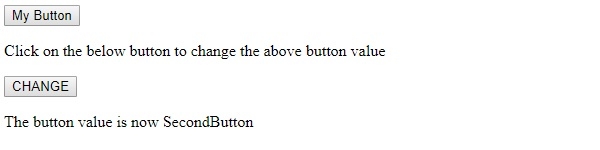 <p>Click on the below button to change the above button value</p>