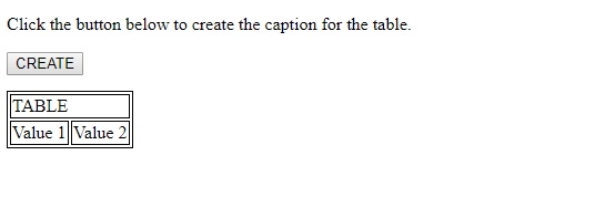 我們首先建立了一個按鈕 CREATE,然後執行單擊時的 createCaption() 方法 −