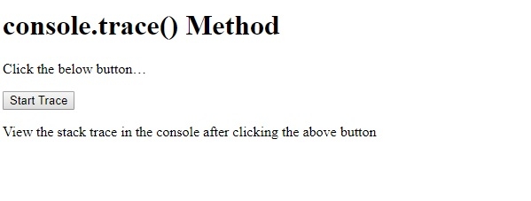 HTML DOM console.trace() 方法用於顯示呼叫 console.trace() 方法的堆疊軌跡。它基本上用於顯示程式碼路徑,即程式碼如何在該點結束的。