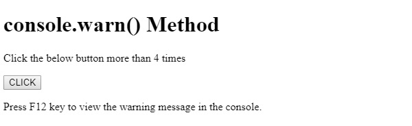 warning() 方法會增加變數 i。如果變數 i 大於 4,則執行 console.warn(msg) 方法,該方法將 msg 引數顯示為警告 −