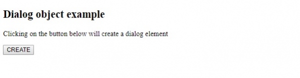 createDialog() 函式使用 createElement() 方法建立 <dialog> 元素。然後,它使用 createTextNode() 方法向其中新增一些文字。然後,我們使用 createElement() 方法在 <dialog> 元素內建立一個按鈕,並使用 createTextNode() 方法新增按鈕文字。