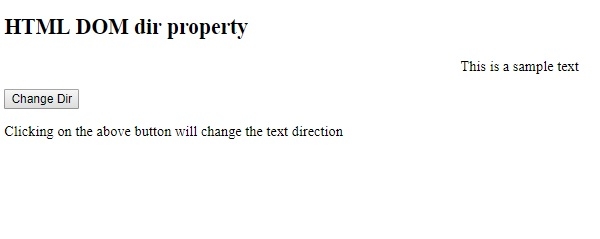 changeDir() 函式使用 getElementById() 方法獲取段落元素,並將其 dir 屬性值設定為從右到左。這將文字從右向左顯示 −
