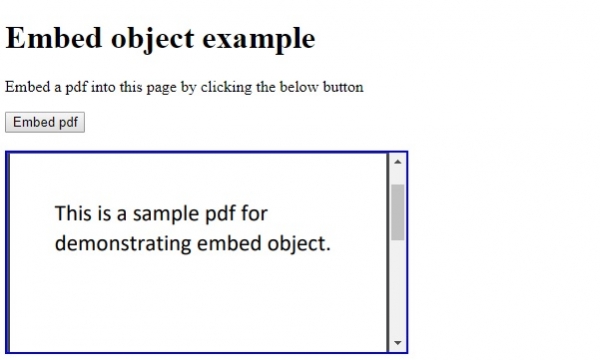 我們首先建立了按鈕“嵌入 pdf”,當用戶點選時,它將執行 embedObj() 函式:
