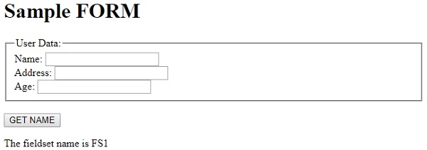 我們首先在表單元素中建立了一個名稱為“FS1”和 ID 為“FieldSet1”的 fieldset −