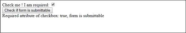 使用選中的複選框單擊“檢查表單是否可提交”按鈕 −