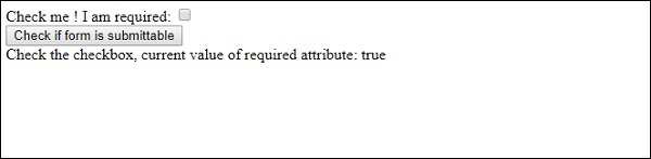 使用未選中的複選框單擊“檢查表單是否可提交”按鈕 −
