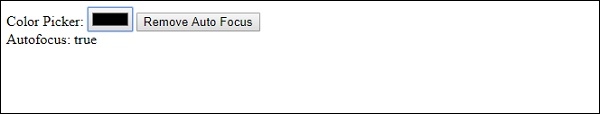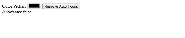 讓我們看一個 輸入顏色 autofocus 屬性的示例 −