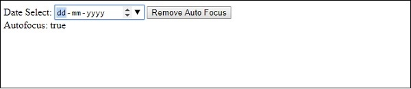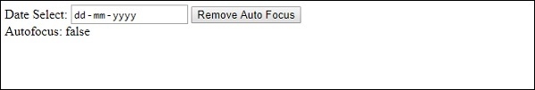 我們來看一下輸入日期 autofocus 屬性的示例 −