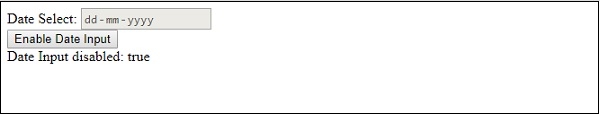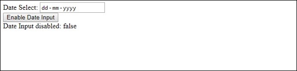讓我們看一個 輸入日期停用 屬性的示例 −