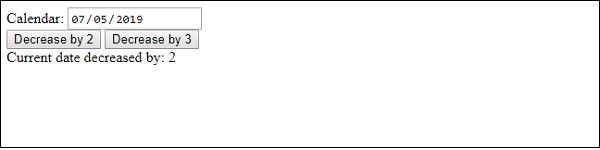 divDisplay.textContent = 'Current date decreased by: '+num;