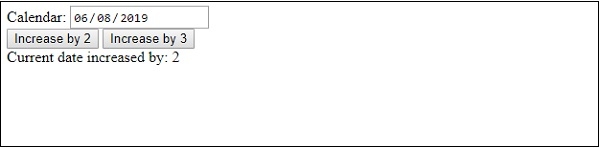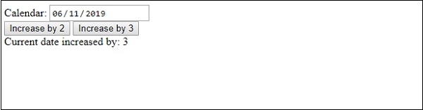 下面讓我們看一個輸入日期 stepUp 方法示例 −