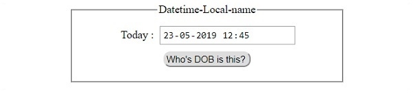 divDisplay.textContent = 'Above DOB is of '+inputDatetimeLocal.name;