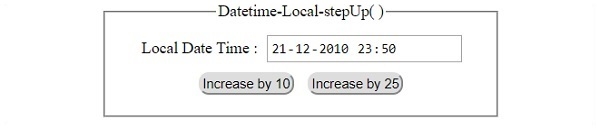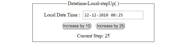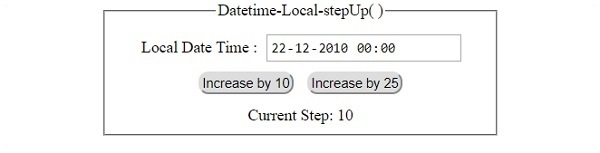 我們來看一個 輸入 DatetimeLocal stepUp 方法的示例 −