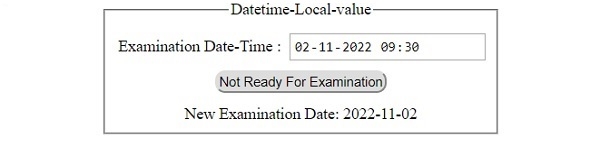 <label for="datetimeLocalSelect">Examination Date-Time :