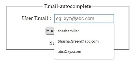 讓我們看一個 輸入電子郵件自動完成 屬性示例 −