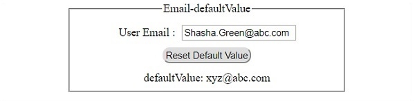 我們來看一個 輸入電子郵件 defaultValue 屬性的示例 −