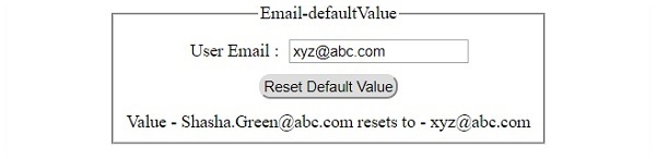 divDisplay.textContent = 'Value - '+inputEmail.value+' resets to - '+inputEmail.defaultValue;