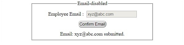 下面讓我們看一個輸入郵箱已停用 屬性示例 −