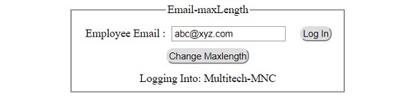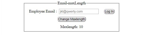 讓我們看一個輸入電子郵件 maxLength屬性的示例 -
