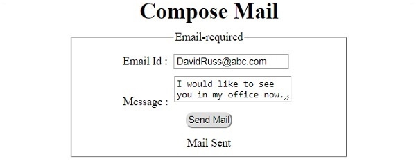 <input type="button" onclick="showMessage()" value="Send Mail">