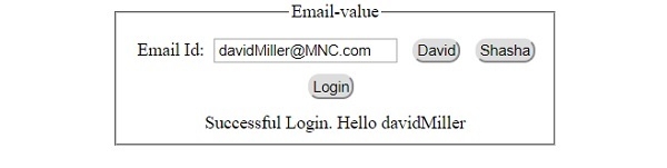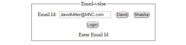 讓我們來看一個 輸入電子郵件值 屬性的示例 −