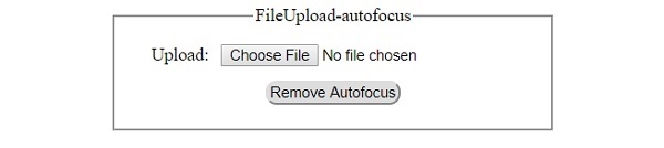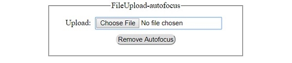 讓我們看一個 Input FileUpload autofocus 屬性的示例 −