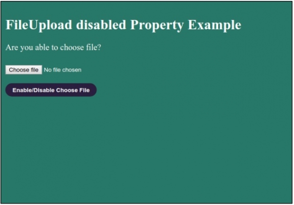 <h1>FileUpload disabled Property Example</h1>