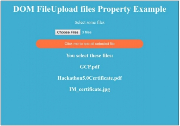 <h1>DOM FileUpload files Property Example</h1>