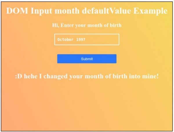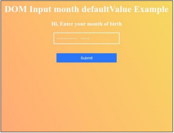 <h1>DOM Input month defaultValue Example</h1>