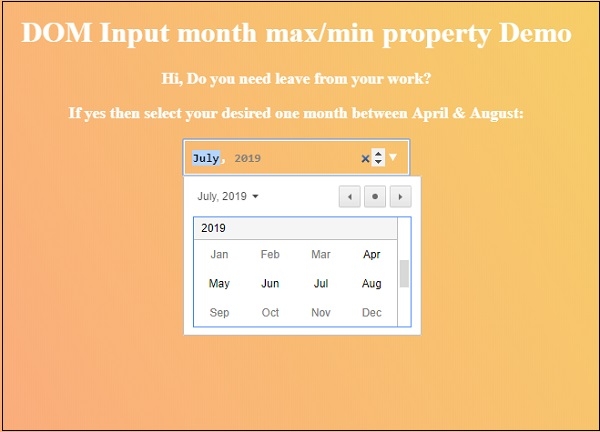 <input type="month" class="monthInput" min="2019-04" max="2019-08">