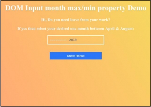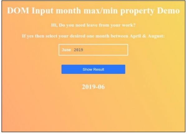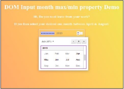下面讓我們看一個 HTML DOM 輸入月份 min 屬性的示例 -