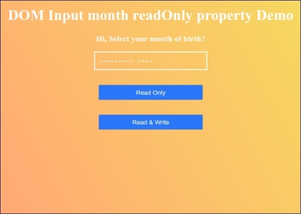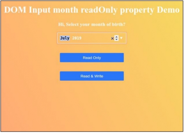 現在,使用月份輸入選擇任何月份,然後點選“只讀”按鈕並嘗試更改你的選擇。它不允許你更改 −