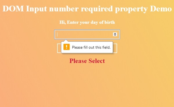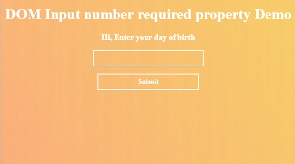 讓我們看看 HTML DOM 輸入數字 required 屬性的例項 −